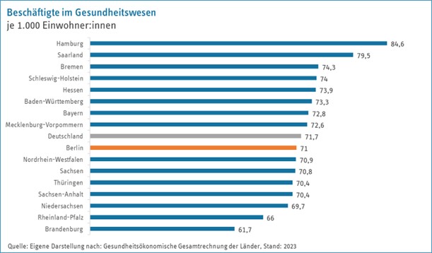 Die Zahl der Beschäftigten im Gesundheitswesen liegt in Berlin unter dem Bundesdurchschnitt – trotz steigender Nachfrage, großer Arzt- und Krankenhausdichte.