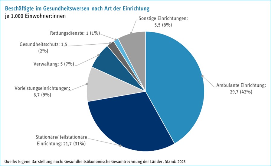 Die Grafik zeigt eine hohe Konzentration des Personals in ambulanten und stationären Einrichtungen, während Vorleistungseinrichtungen und der Verwaltungsapparat deutlich schwächer besetzt sind.