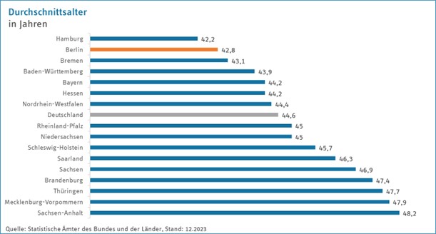 Berlin gehört mit einem Durchschnittsalter von 42,8 Jahren zu den jüngeren Bundesländern – dennoch steigt der Anteil älterer Menschen kontinuierlich an.