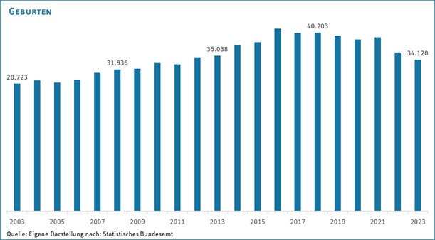 Seit 2016 ist in Berlin ein leichter Rückgang der Geburtenzahlen zu beobachten. Zwar bleibt die absolute Zahl vergleichsweise hoch, die demografische Entwicklung weist jedoch auf eine schrittweise Alterung hin.