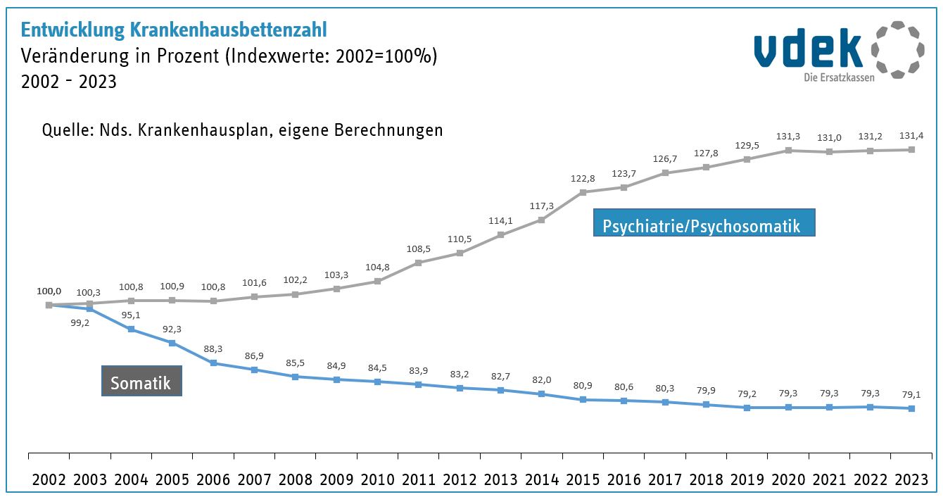 Veränderung in den Bereichen Psychiatrie/ Psychosomatik und Somatik in Niedersachsen