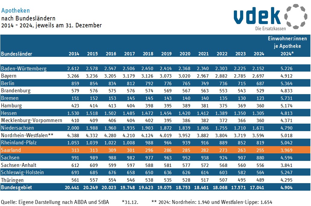 Grafiken und Datenvdek-Basisdaten des Gesundheitswesens im Saarland 2025
