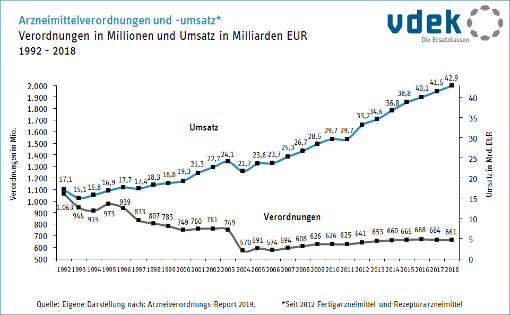Bei Heilmitteln betrug das Gesamtvolumen 13,3 Milliarden Euro (+ 10,3 Prozent), bei Hilfsmitteln 11,7 Milliarden Euro (+ 4,8 Prozent). Mit einem Anstieg von 10,2 Prozent legten auch Rettungsdienst und Krankentransport, für die 7,5 Milliarden Euro ausgegeben wurden, deutlich zu.