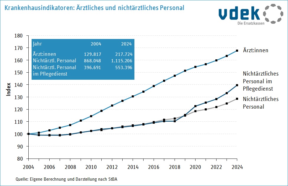 102,2 Milliarden Euro wurden 2024 in der gesetzlichen Krankenversicherung (GKV) für Krankenhausbehandlung ausgegeben, was einem Anteil von 31,2 Prozent an den Ausgaben insgesamt entspricht. Dieser Sektor ist der größte unter allen Ausgabenbereichen und nahezu doppelt so groß wie die Ausgaben für Arzneimittel.