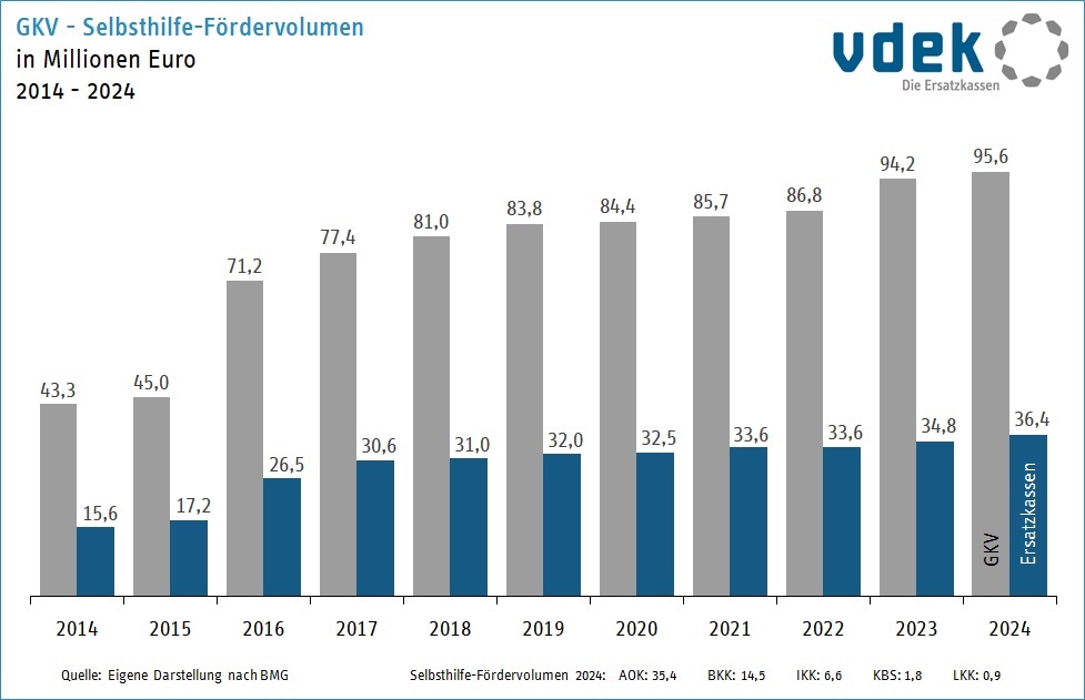 Das Selbsthilfe-Fördervolumen hat sich sich von 2014 mit 43,3 Mio. Euro bis 2024 mit 95,6 Mio. Euro mehr als verdoppelt.