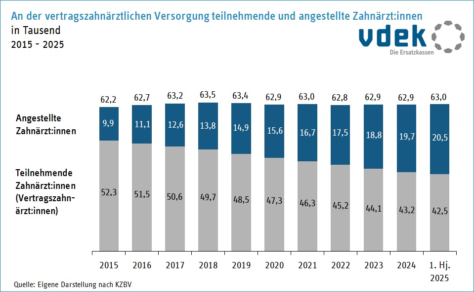 Rund 18,2 Mrd. EUR wurden 2024 in der gesetzlichen Krankenversicherung (GKV) für die zahnärztliche Versorgung inklusive Zahnersatz ausgegeben, was einem Anteil von 5,6 Prozent an den Gesamtausgaben entspricht.
